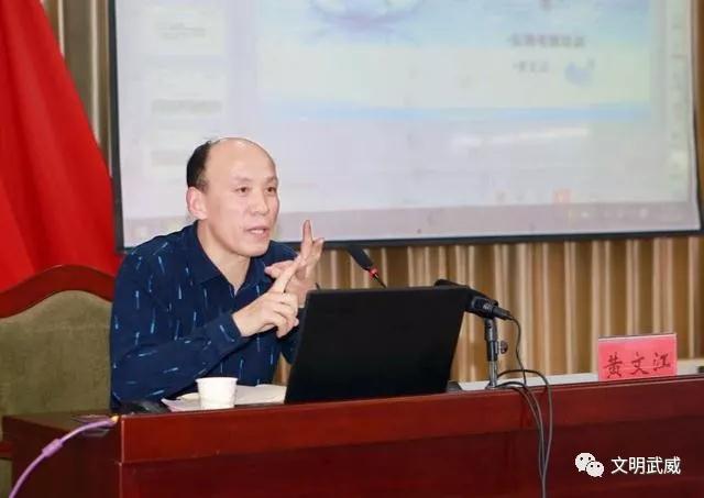 文江教授多年从事文明城市创建工作方面的研究,培训会上,黄文江教授紧紧围绕大家关心的如何打造城市品牌、创建全国文明城市等重点问题,围绕全国文明城市测评体系中实地测评、网上申报和问卷调查三种测评办法,从测评内容、测评标准等方面,对做好各项创建工作进行了深入细致的辅导。对武威市在创建过程中如何强弱项、补短板、夯基础、显特色,借鉴全国其他城市的先进经验做法提出了思路和对策,并分别解答了6位同志现场提出的如何发动群众全员参与全国文明城市创建、如何营造青少年健康成长的环境、如何做好志愿者服务工作等问题,使参训者增加了知识,开阔了视野,进一步增强了信心和决心。