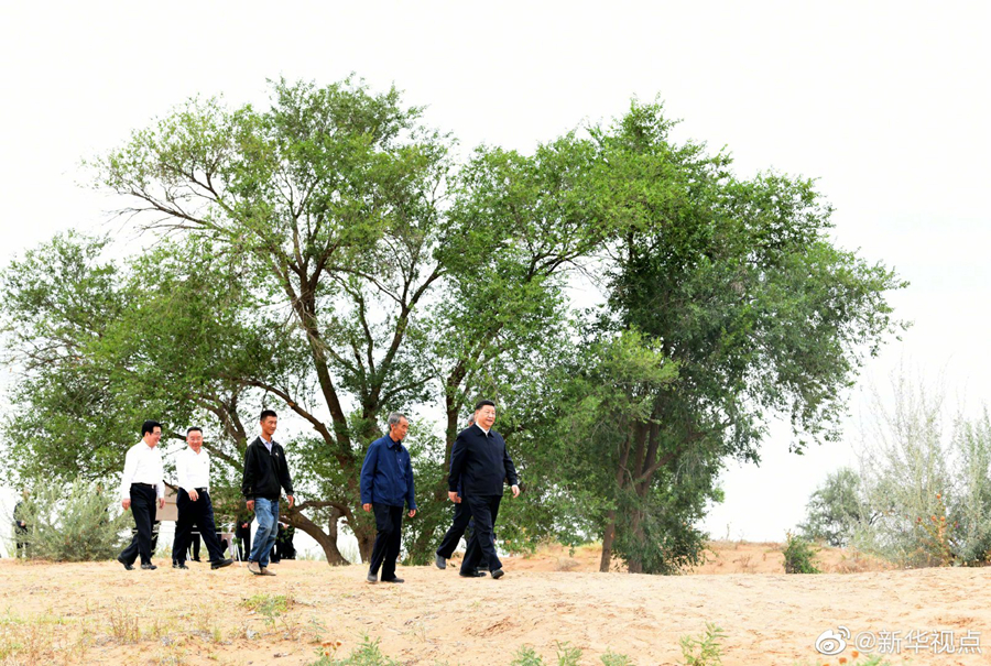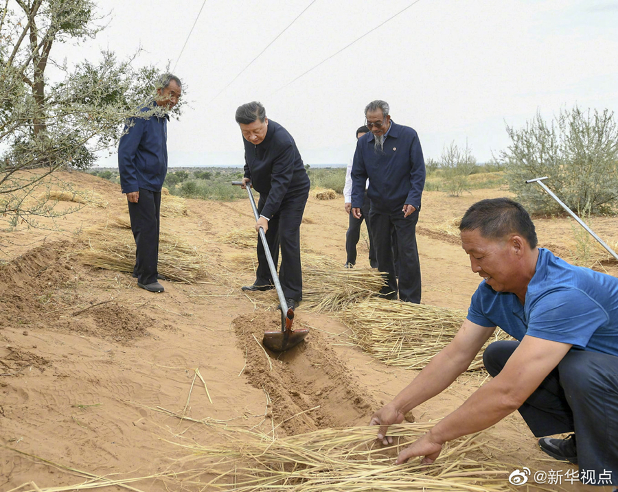 21日,习近平总书记继续在甘肃考察。上午,习近平来到武威市古浪县黄花滩生态移民区富民新村,了解易地搬迁群众生产生活及脱贫致富情况。随后,他乘车前往八步沙林场,实地察看当地治沙造林、生态保护等情况。